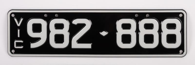 Lot 5 of 31: Six-Digit Victorian Custom Numeric plates '982.888', sold with rights to display [Location: Moorabbin, VIC]