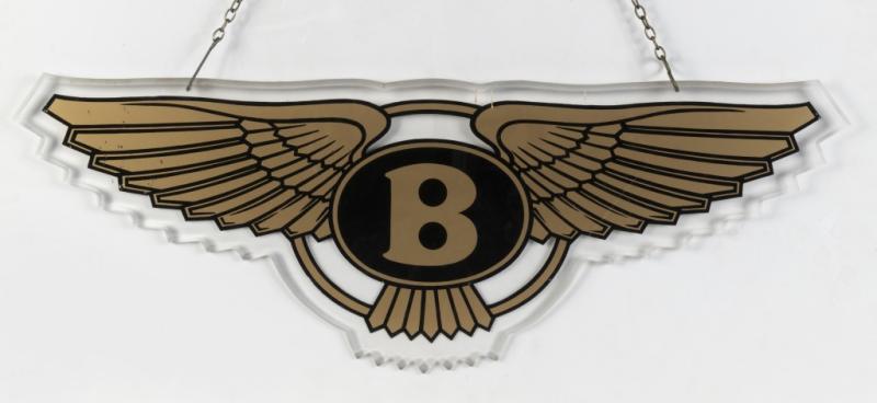 Lot 200 of 550: KELLOW FALKINER: A superb original perspex reverse painted winged logo Bentley dealership sign as removed from Kellow Falkiner Melbourne, 25cm high, 68cm wide