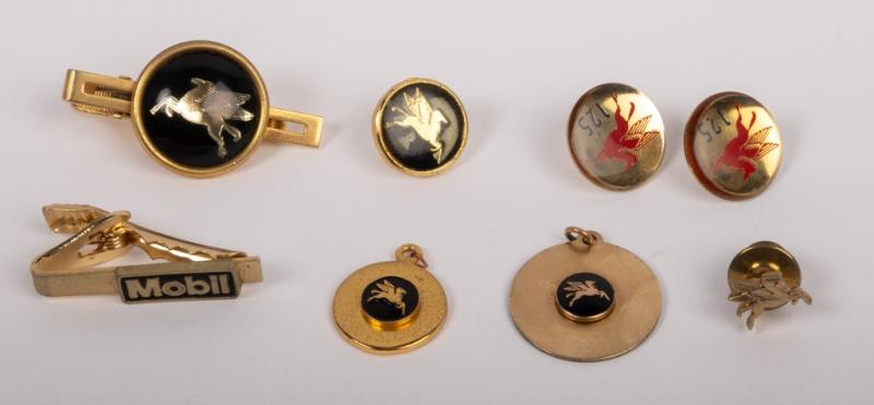 Lot 210A of 550: MOBIL: A collection of eight small various Mobiloil pins/badges including two tie pins and others