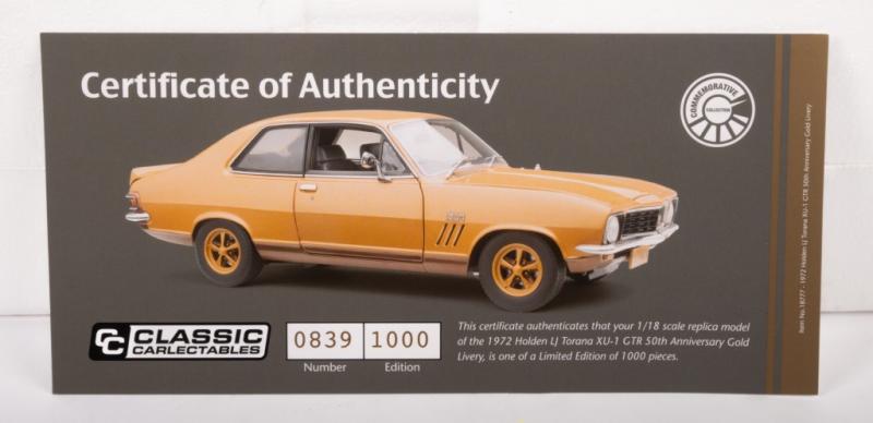 Lot 3 of 200: HOLDEN LJ TORANA: A 1:18 scale 1972 Holden LJ Torana GTR XU:1, finished in a 50th anniversary gold livery paintwork