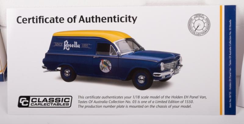 Lot 7 of 200: HOLDEN EH VAN: A 1:18 scale Holden EH panel van, finished in the Rosella sauces livery, part of the tastes of Australia collection