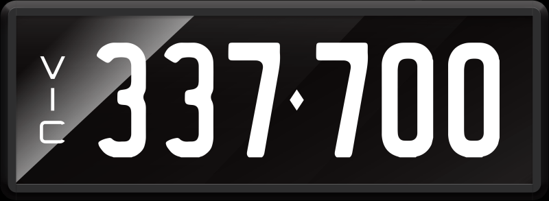 Lot 2 of 21: VIC Numerical Number Plate ‘337.700’ finished in Prestige style with one standard and one slimline plate included. Sold with rights to display.