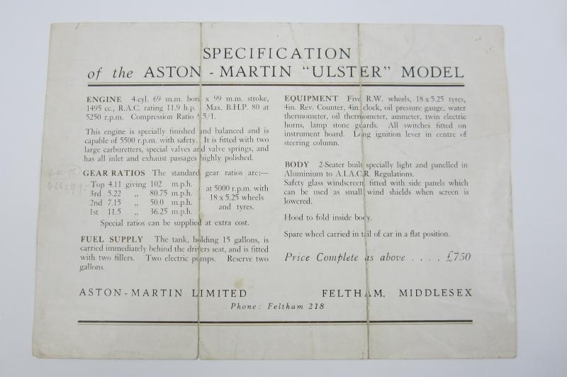 Lot 2 of 137: ASTON MARTIN: An original Aston Martin "ULSTER" brochure.