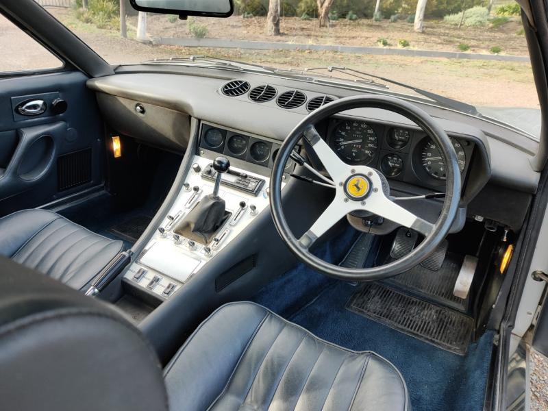 The car left Ferrari's Maranello works finished in Grigio Argento Le Sancy (dark silver) with the rare combination of dark blue leather interior. Remarkably the car is still in its original paint and trim, having never being restored. It gained second place in the Ferrari Concours d’Elegance at Eastern Creek, several years ago, due to its originality.