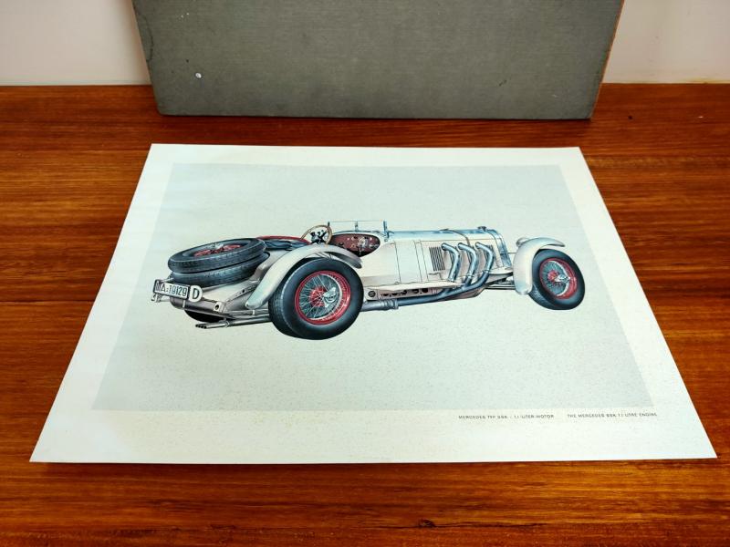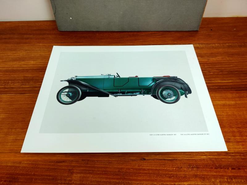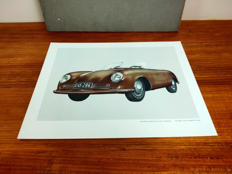 PORSCHE: A 1963 original Porsche Factory Art Book Konstruktionen Portfolio made in Western Germany. Contains 20 plates that measure 17.5 x 13.5. Eighteen colour plates, each with a historical colourful illustration of a Porsche associated vehicle with the style of the vehicle printed in the lower right corner in German and English text. One two-sided plate describes the vehicles in the colour plates, one side in German and one side in English. One two-sided plate provides a brief look at Prof. Dr.-Ing. h.c. Ferdinand Porsche in German text with bust photo, with back side providing English text. On back side there is also a photo and brief bio of son Ferry Porsche. Car plates represented are: Lohner-Porsche Chaise of 1900, the first race car with 60 horsepower, 1905/06 Touring Car with Combination Drive, Austro-Daimler "Prince Henry", Town Coupe of 1914, 4.4 Litre Austro Daimler of 1921, 1100 cc "Sasha" Race Car, Daimler Race Car for the 1924 Targa Florio, Mercedes SSK 7.1 Litre Engine, 5.3 Litre Steyr "Austria", Auto-Union Race Car of 1934/37, first VW of 1938/39, Cisitalia Grand Prix Car - 1500 cc Four-wheel Drive, first 1100 cc Porsche of 1948, Auto-Union Race Car of 1934/37, first VW of 1938/39, Cisitalia Grand Prix Car-1500 cc Four-wheel Drive, first 1100 cc Porsche of 1948, Porsche Spyder with Four Overhead Camshafts, Eight-cylinder Porsche for Formula 1, Type 356 C Porsche with Disc Brakes, and 901 Porsche. Three prints have been laid down.