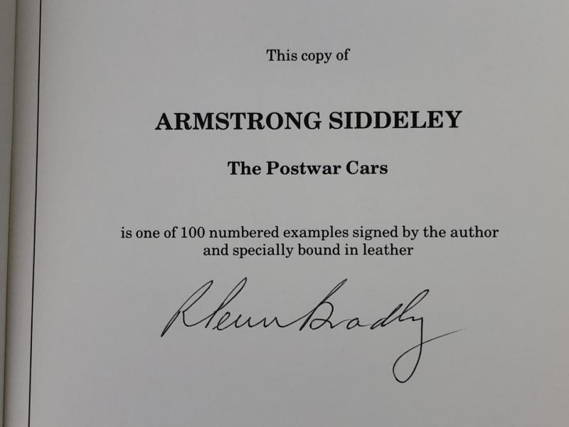 Lot 18 of 254: ARMSTRONG SIDDELEY: 'Armstrong Siddeley - The Postwar Cars' hardcover book. Signed by author. L.E 55/100
