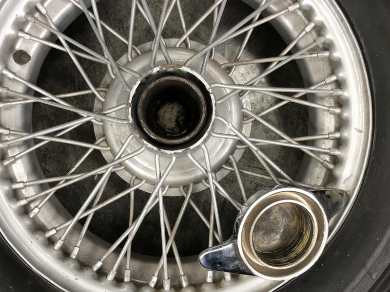 Lot 19 of 254: JAGUAR: A 16" wire wheel and tyre, with hub and  'knock-on', believed to be Jaguar XK 150