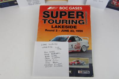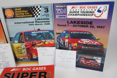 Catalogue Auction info Australian & New Zealand Motorsport(#101) 25/10/2018 10:00 AM AEDT - 30/10/2018 4:02 PM AEDT CLOSEDFirst Lot Begins Closing 30/10/2018 12:32 PM AEDT Lot 47 of 105: LAKESIDE: Four Lakeside racing programmes (with 23 driver signatures) CLICK IMAGE TO ENLARGE PreviousNextSimilar Items Lot closed - Winning bid:$30 (3 bids) Australian & New Zealand Motorsport(#101) 25/10/2018 10:00 AM AEDT - 30/10/2018 4:02 PM AEDT CLOSED First Lot Begins Closing 30/10/2018 12:32 PM AEDT Description VIN: Engine No: Registration: Description: LAKESIDE: Four Lakeside racing programmes including; Round 2- June 1996 Super Touring programme signed by Paul Morris, Geoff Brabham, Brad Jones, Greg Murphy, Geoff Full, Peter Brock, Cameron McLean and Steven Richards; Round 7 – October 1996 Super Touring programme signed by Paul Morris, Geoff Brabham, Brad Jones, Greg Murphy, Mark Adderton, Geoff Full, Peter Brock, Cameron McLean, Steven Richards, Jim Richards, Justin Matthews and Charlie O’Brien; Round 7 – October 1997 programme signed by Geoff Brabham and John Bowe; Together with a Round 3 – March 1998 programme signed by Dick Johnson. Categories: Australian & New Zealand Motorsport Shipping info