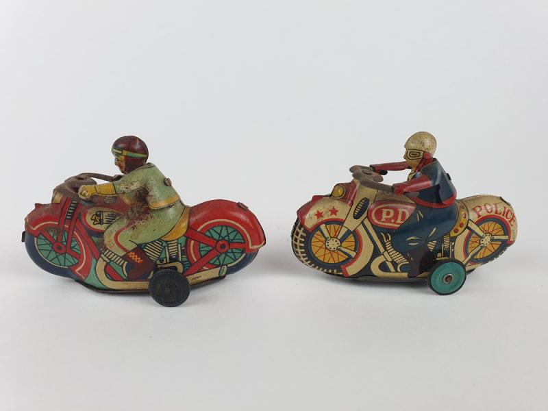 Lot 49 of 528: CIVILIAN: Indian Motorcycle plus Police Dept, two small friction bikes, made in Japan c1950s.