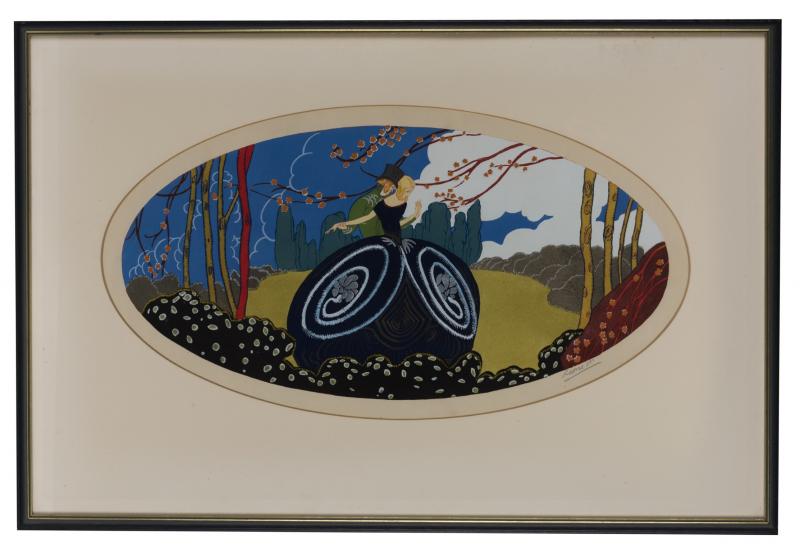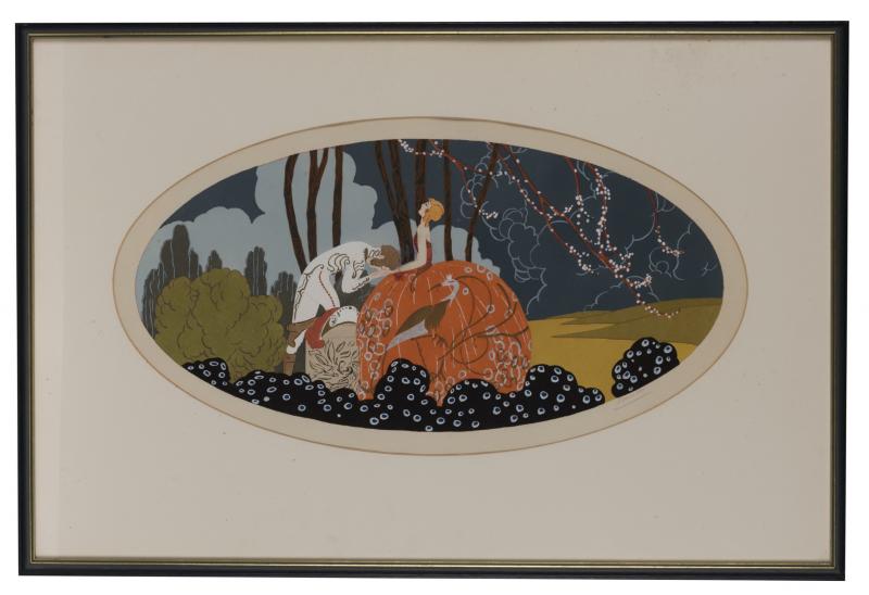 Lot 237 of 320: ART DECO: An attractive pair of original oval form artworks of theatrical courting scenes. Circa 1920's