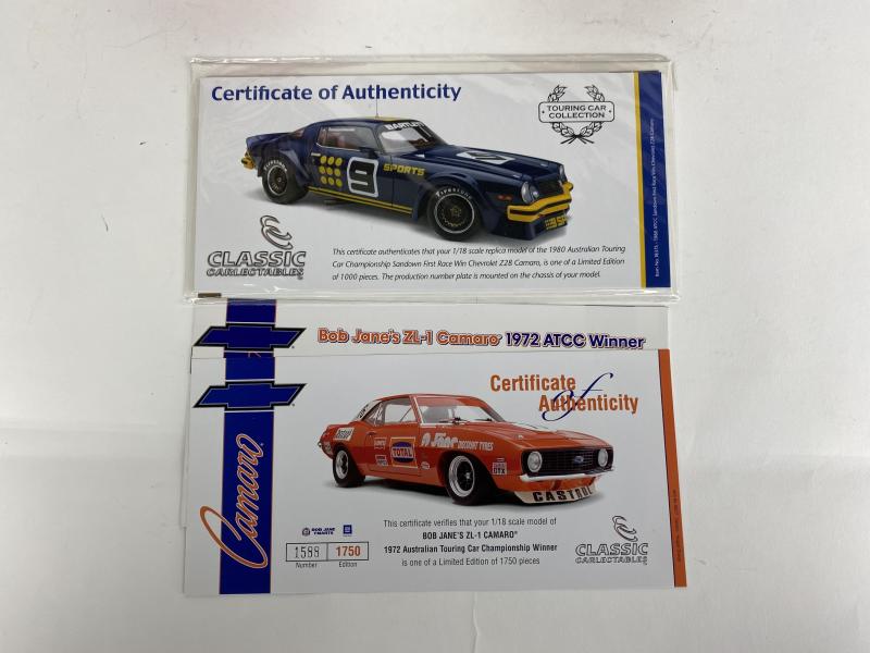 Lot 126 of 206: CHEVROLET: Two Chevrolet Camaro racing models by produced Classic Carlectables (NB description)