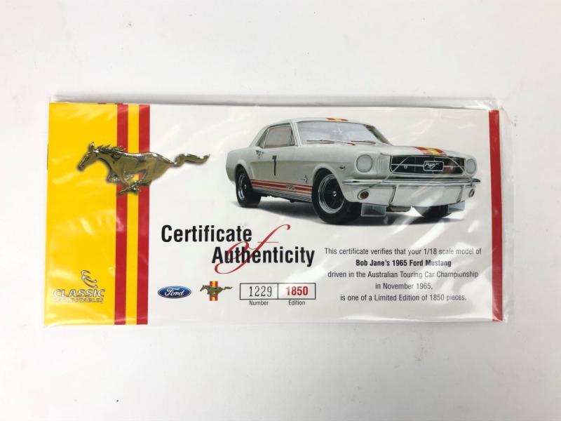Catalogue Auction info A Lifetime Passion- Models from the Collection of Bill Ahearn(#114) 10/07/2020 10:00 AM AEST - 19/07/2020 4:13 PM AEST CLOSEDFirst Lot Begins Closing 19/07/2020 4:13 PM AEST Lot 13 of 168: FORD: A 1:18 scale Bob Jane 1965 Ford Mustang by Classic Carlectables. L.E 1229/1850 CLICK IMAGE TO ENLARGE PreviousNextSimilar Items Lot closed - Winning bid:$485 A Lifetime Passion- Models from the Collection of Bill Ahearn(#114) 10/07/2020 10:00 AM AEST - 19/07/2020 4:13 PM AEST CLOSED First Lot Begins Closing 19/07/2020 4:13 PM AEST Description VIN: Engine No: Registration: Description: FORD: A 1:18 scale Bob Jane 1965 Ford Mustang by Classic Carlectables, limited edition, numbered 1229/1850, with CoA; boxed with inner polystyrene packaging and protective outer cardbord box. Categories: Model Shipping info