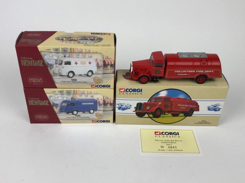 Catalogue Auction info A Lifetime Passion- Models from the Collection of Bill Ahearn(#114) 10/07/2020 10:00 AM AEST - 19/07/2020 4:13 PM AEST CLOSEDFirst Lot Begins Closing 19/07/2020 4:13 PM AEST Lot 106 of 168: CORGI: A group of Limited Edition emergency vehicles models CLICK IMAGE TO ENLARGE PreviousNextSimilar Items Lot closed - Winning bid:$145 A Lifetime Passion- Models from the Collection of Bill Ahearn(#114) 10/07/2020 10:00 AM AEST - 19/07/2020 4:13 PM AEST CLOSED First Lot Begins Closing 19/07/2020 4:13 PM AEST Description VIN: Engine No: Registration: Description: CORGI: A group of limited edition 1:43 scale emergency vehicles by Corgi including Collection Heritage Peugeot D3A - Ambulance Civile (EX70619) limited edition 0046/2800, Collection Heritage Renault 1000kg - La Gendarmerie (EX70519) limited edition 1875/2100, Corgi Classics White Tanker Volunteer Fire Dept (98452) limited edition 0843/7500 and others; all with boxes and CoA's. Categories: Model Shipping info
