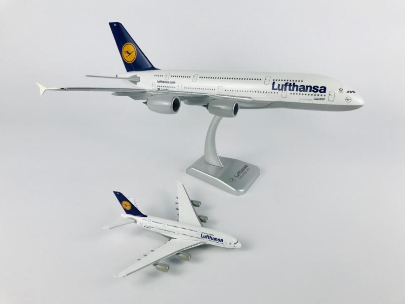 Lot 41 of 190: LUFTHANSA AIRBUS A380-800: 2 Models : A 1:200 scale plastic model, registration 'D-AIMA', and A 1:400 scale metal model on wheels, registration 'D-AIMA'.