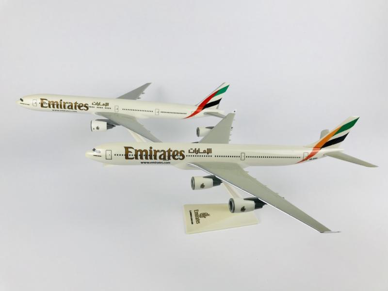 Lot 103 of 190: EMIRATES: 2 models (35cm long): A 1:100 Airbus A340-500 plastic model, registration 'A6-ERA' and A 1:100 scale Boeing 777-300 plastic model.
