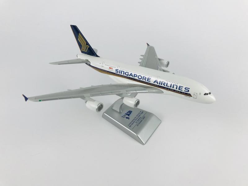 Lot 136 of 190: SINGAPORE AIRLINES AIRBUS A380: A 1:400 scale (18cm long) metal commemorative model on stand.