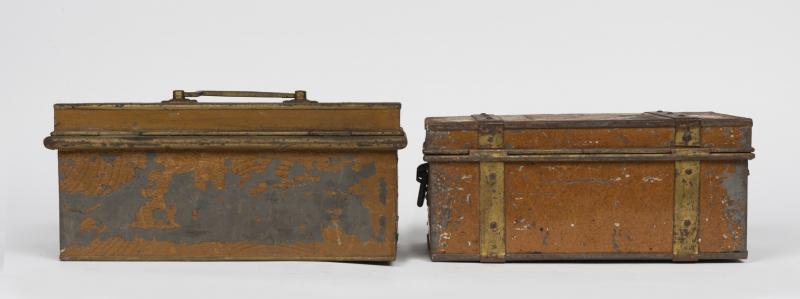Lot 217 of 436: CASH BOXES: Two brown painted cash tin boxes, early 20th century