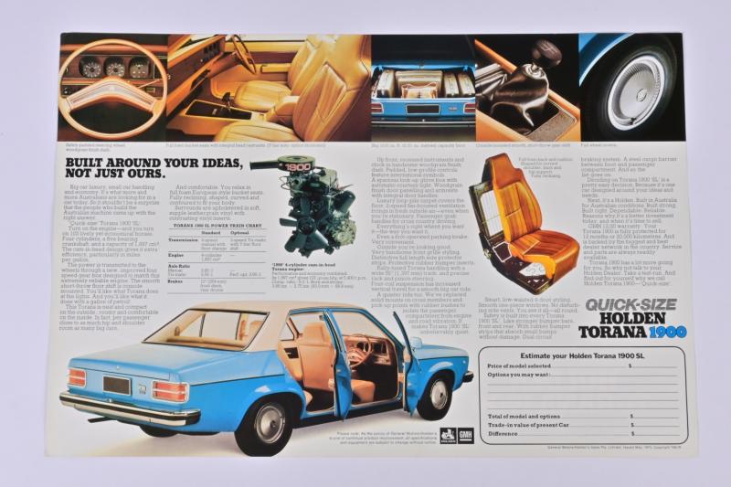 Lot 85 of 243: TORANA: A May 1975 'QUICK-SIZE HOLDEN TORANA 1900 'SL' sales brochure