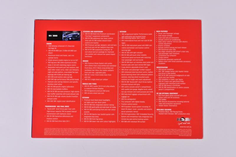 Lot 87 of 243: HSV SV 300 SERIES 2: A October 2001 HSV Series 2 SV 300 sales brochure