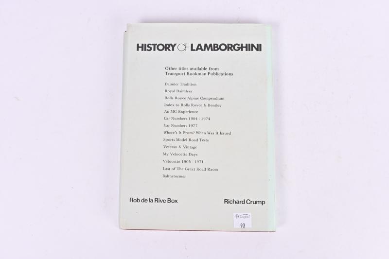 Lot 93 of 450: LAMBORGHINI: 'HISTORY OF LAMBORGHINI' hardback book by Rob de la Rive Box and Richard Crump