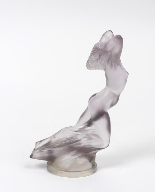 Lot 48 of 658: LALIQUE:A 'Vitesse' Lalique mauve frosted glass car mascot depicting a nude kneeling female with her body leaning forward and her head, hair and arms flowing backwards, marked 'R. Lalique' to base, 18cm high