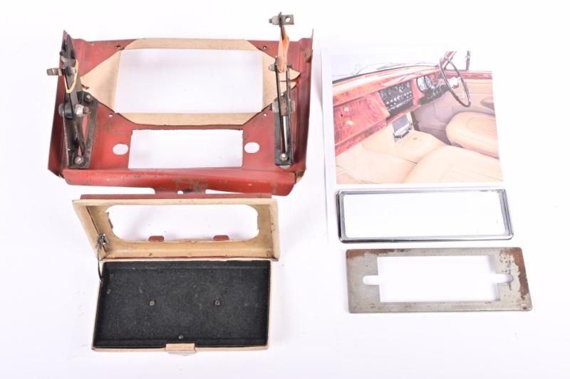 Lot 644 of 658: JAGUAR: A Jaguar MK II centre console with radio surround and radio holder bracket. Leather ashtray cover