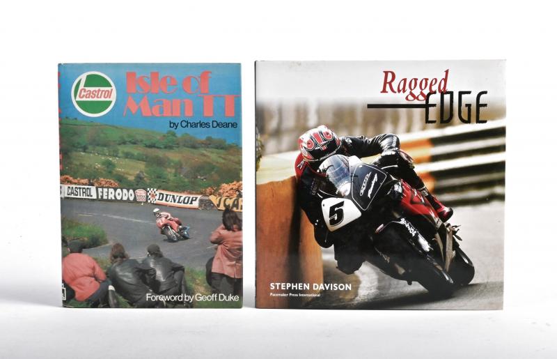 Lot 56 of 563: MOTORCYCLE ROAD RACES: Two hardcover books detailing motor cycling road races. 'Castrol - Isle of Man TT' by Charles Deane