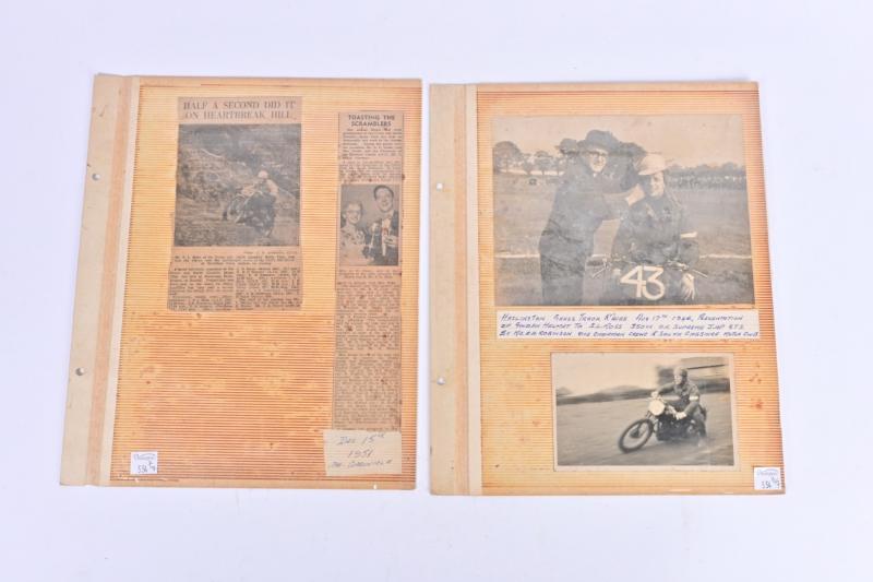 Lot 554 of 437: MOTORCYCLES: A collection of vintage black and white motorcycle pictures and newspaper clippings