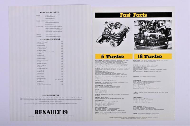 Lot 57 of 616: RENAULT: Two Renault sales brochure. Renault Turbo Technology and Renault 19 sales brochures