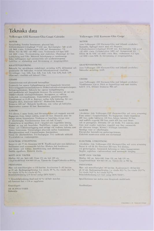 Lot 63 of 616: VOLKSWAGEN: A interesting 1965 Volkswagen Karmann-Ghia Cabriolet and Coupe sales brochure. Swedish text