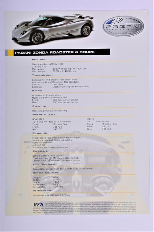 Lot 102 of 616: PAGANI: A 2004 Pagani Zonda Roadster & Coupe sales brochure