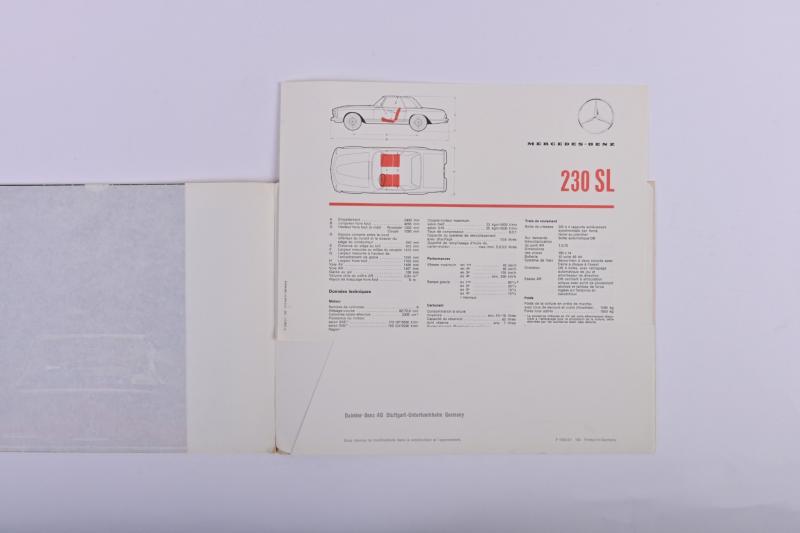 Lot 168 of 616: MERCEDES-BENZ: A 1965 Mercedes-Benz 230 SL sales brochure. French text