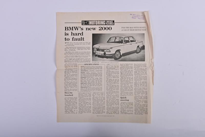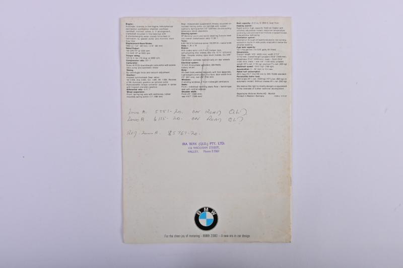 Lot 183 of 616: BMW: Two items of BMW 2000 sales literature. 'BMW 2000' colour sales brochure