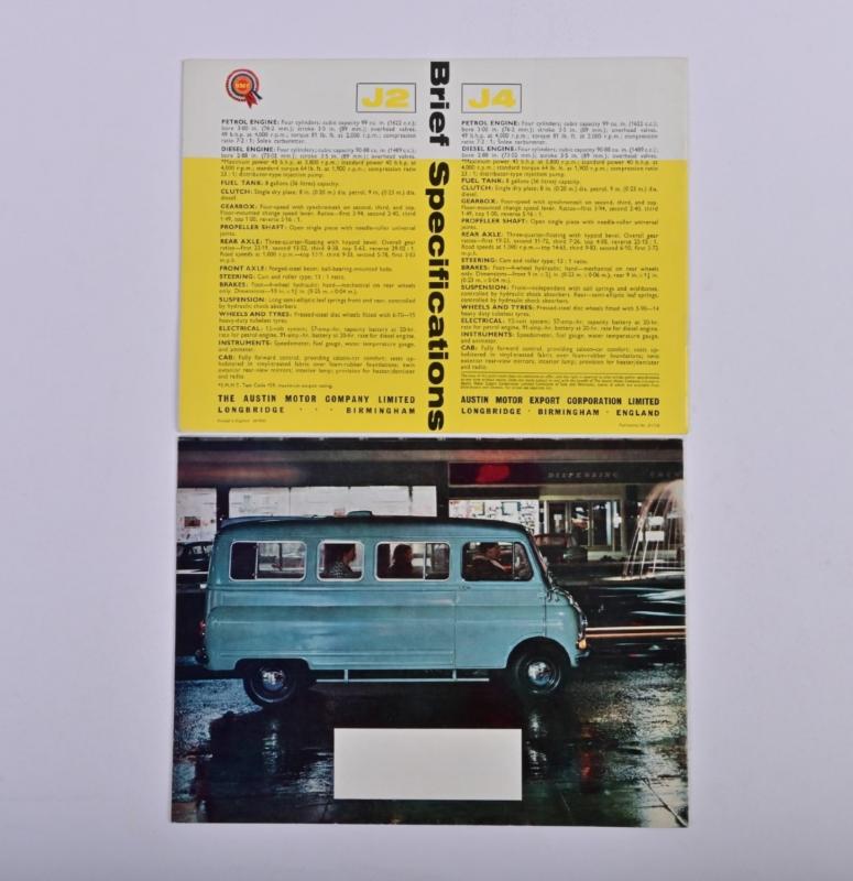 Lot 249 of 616: BMC AUSTIN MORRIS: Two BMC sales brochures. Austin Morris J2 M16/J4 M10 & BMC AUSTIN MORRIS '250JU Van, Pick-Up, Coach' sales brochure. Excellent