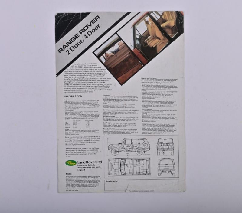 Lot 295 of 616: LAND ROVER: Two Land Rover items. 1982 RANGE ROVER 2 Door/4 Door colour sales brochure & 'LAND ROVER NINETY Press Photo