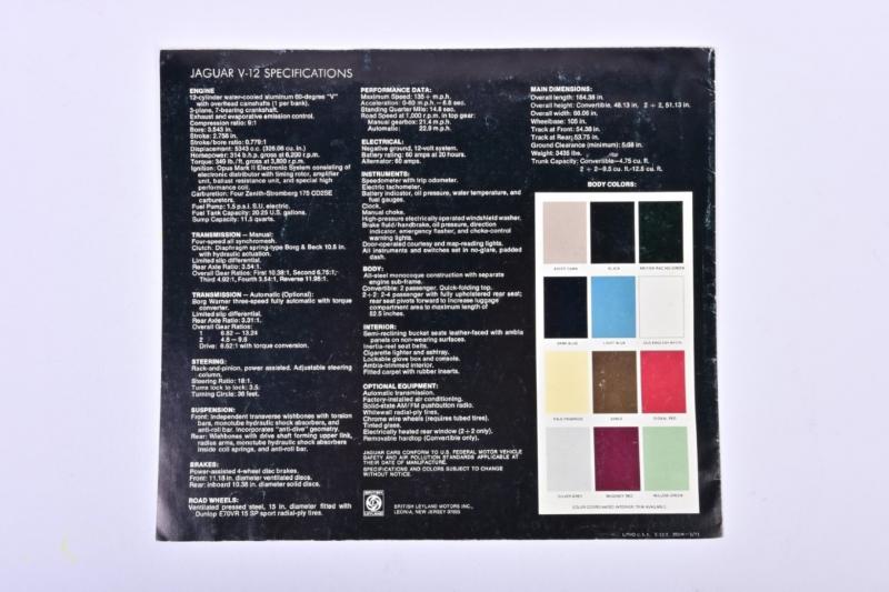 Lot 468 of 616: JAGUAR: An American 1971 'Jaguar V-12: The ultimate cat' colour sales brochure