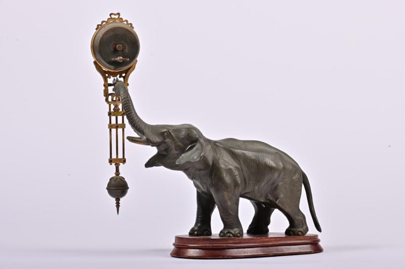 Lot 38 of 539: CLOCK: A German bronzed spelter elephant form 8-day mystery swinger clock by Junghans, 28cm high (working)