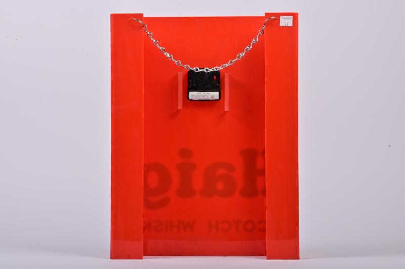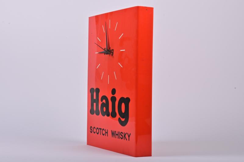 Lot 75 of 539: HAIG SCOTCH: A circa 1980s Haig Scotch Whisky acrylic wall clock, 40cm high, 31.5cm wide, 5cm deep