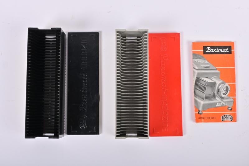 Lot 194 of 539: PROJECTOR: A Braun 'Paximat' projector in carry case, with original instruction booklet and magazine, together with a small Hanimex slide filing cabinet,