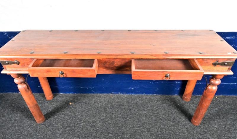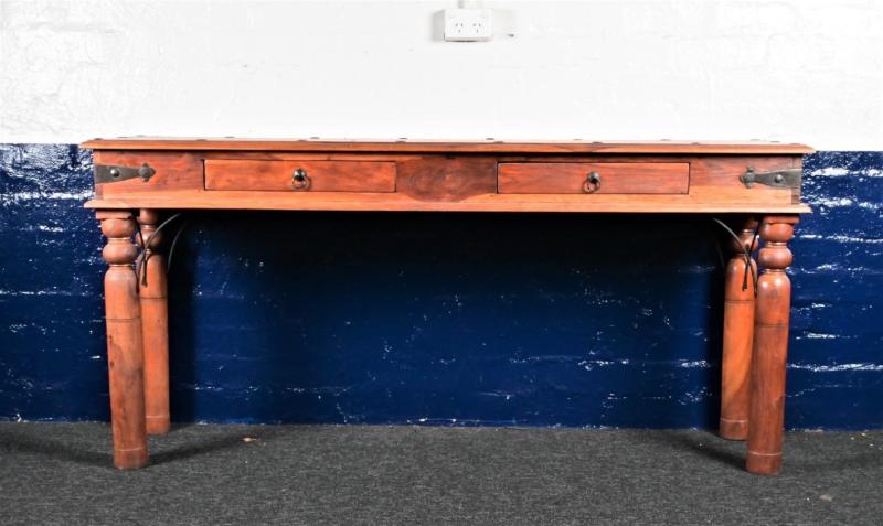 Lot 50 of 315: HALL TABLE: A Balinese hardwood ironbound hall table, 77cm high,165cm wide, 46cm deep