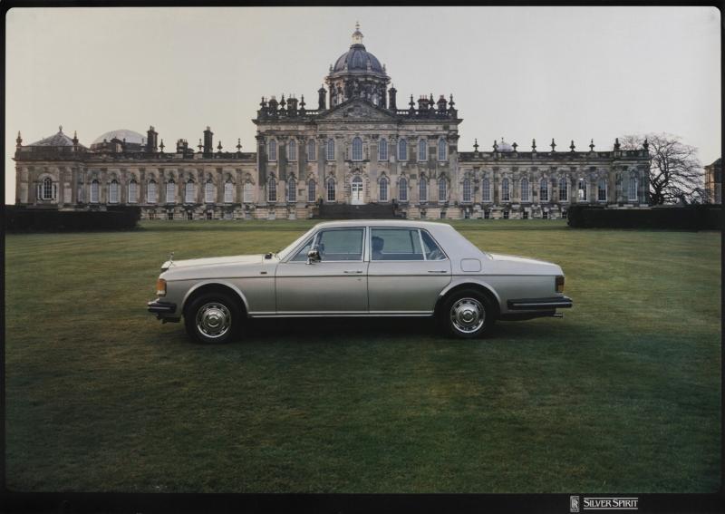 Lot 782 of 468: ROLLS ROYCE: A small double sided poster featuring Rolls Royce Silver Spirit on the front side and detailed description of various Rolls Royce cars verso