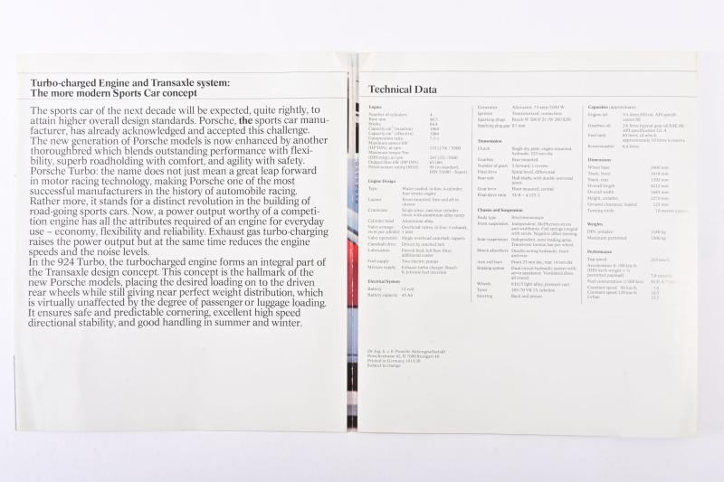 Lot 792 of 468: PORSCHE: Circa 1978 Porsche 924 Turbo brochure