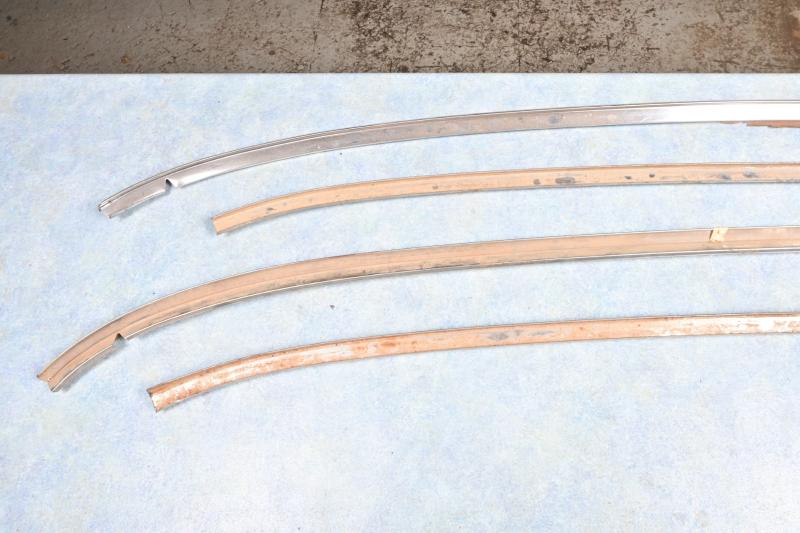 Lot 166 of 326: HOLDEN: Four Holden chrome metal windscreen surrounds in two sized, one unused in remnets of period Holden wrapping, aprx 139 & 118cm long