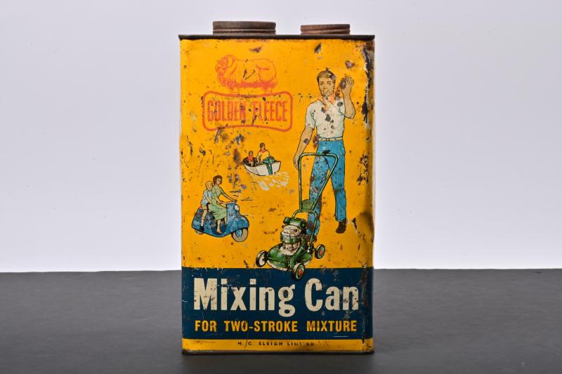 Lot 68 of 643: GOLDEN FLEECE: A rare early 1960s one gallon Mixing Tin for Two Stroke Mixture Golden Fleece motor oil tin