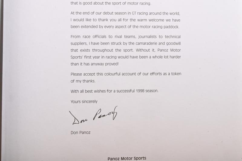 Lot 18 of 417: PANOZ: 'THE RACE - Panoz Motor Sports 1997' hardcover book. Official PANOZ letter from Don Panoz