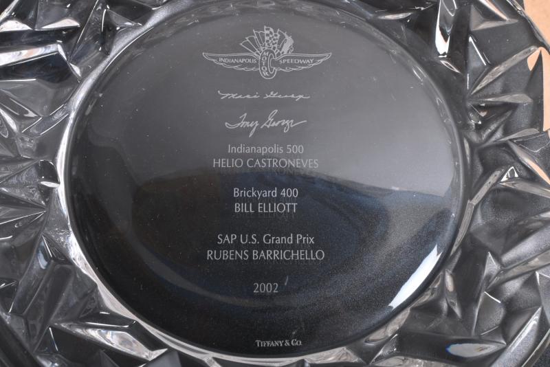 Lot 64 of 417: INDIANAPOLIS: A TIFFANY & CO glass plate commemorating past winners at Indianapolis Motor Speedway from 2002