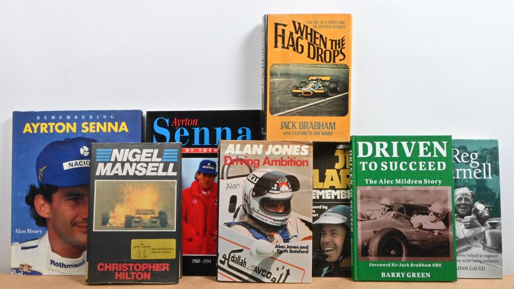 Lot 327 of 417: MOTOR RACING DRIVERS: A collection of hardcover books detailing the racing careers of various racing car drivers. First Edition hardbound copy of 'DRIVEN TO SUCCEED - The Alec Mildren Story' by Barry Green