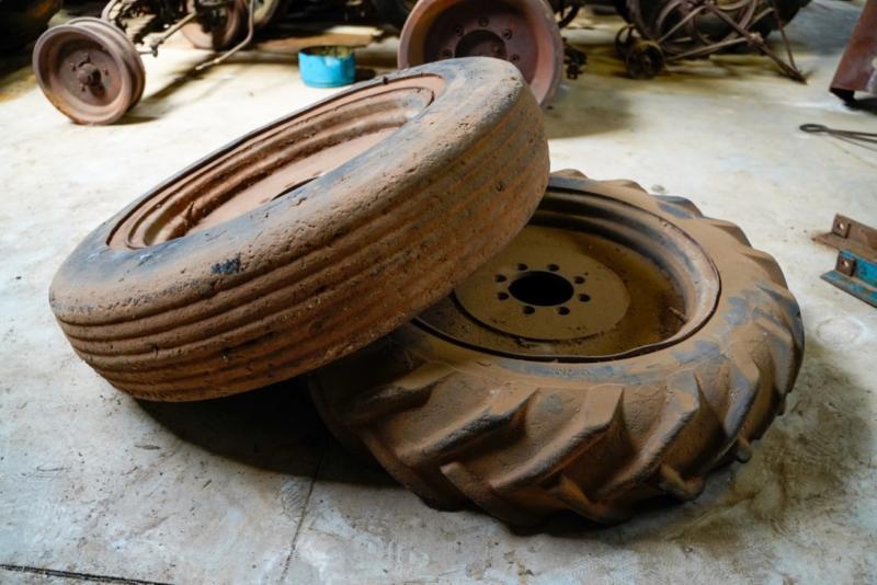 Lot 169 of 323: Two 8-stud tractor wheels of similar size