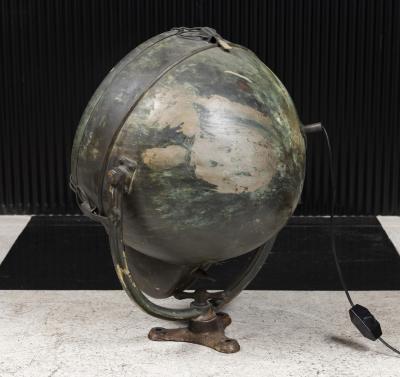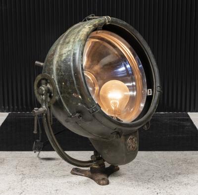 GENERAL ELECTRIC: A large circa 1930s GE copper spotlight, face diameter 37cm