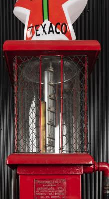 BOWSER: A circa 1920s/1930s Woodward 6-gallon gravity feed petrol bowser in Texaco Power Chief livery